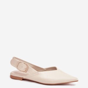 Baleriny damskie wykonane z eko skóry. Smukłe, szpiczaste noski nadają im lekkości i podkreślają kobiecy styl, a płaski obcas zapewnia wygodę podczas chodzenia. Przeszycie umieszczone z przodu dodaje subtelnego charakteru, natomiast pasek z tyłu z ozdobną klamrą pełni zarówno funkcję regulacji, jak i efektownego detalu. To model, który świetnie dopełni zarówno casualowe, jak i bardziej eleganckie stylizacje.